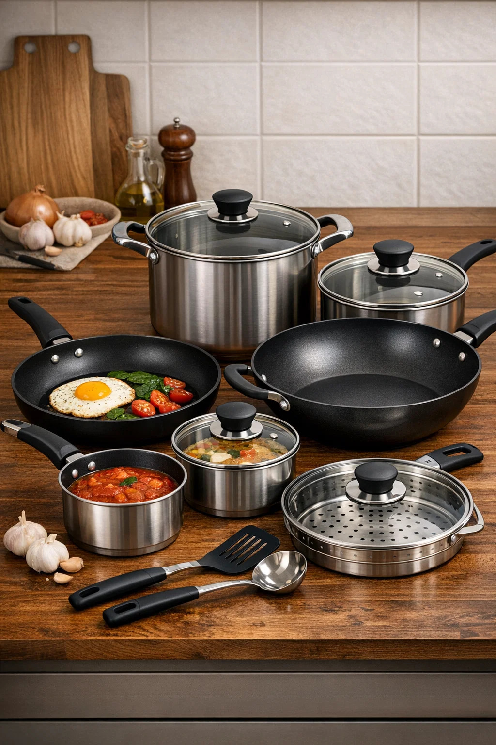 En komplet sæt køkkengrej er som en multifunktionel værktøjskasse, der indeholder forskellige "professionelle værktøjer" til håndtering af forskellige ingredienser og tilberedningsmetoder. Med dette komplette sæt kan du nemt klare alt fra en simpel morgenmad med spejlæg til en overdådig familiemiddag.