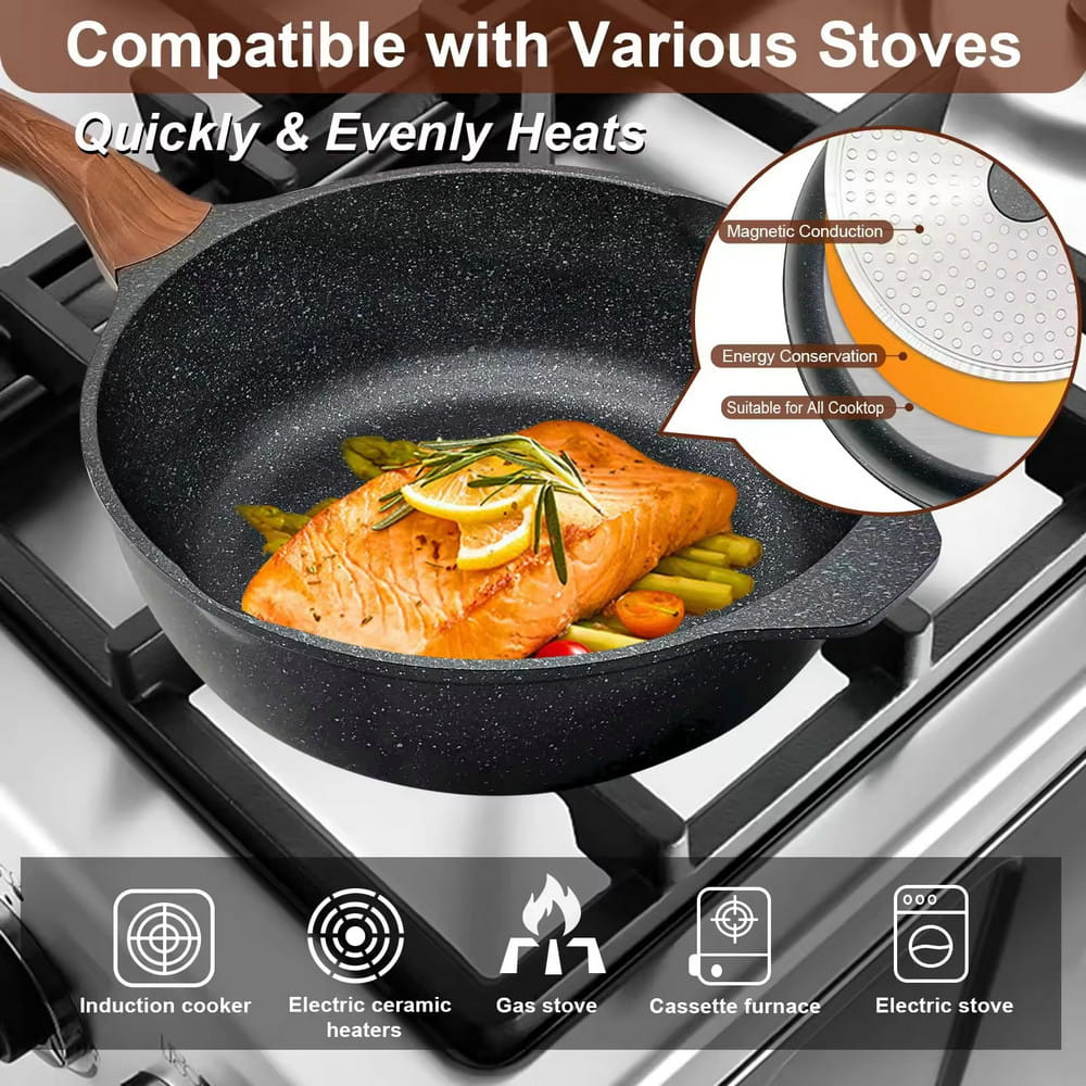 Fuld størrelse brugerdefineret logo stor stor nonstick stegepande med træhåndtag Wholesale